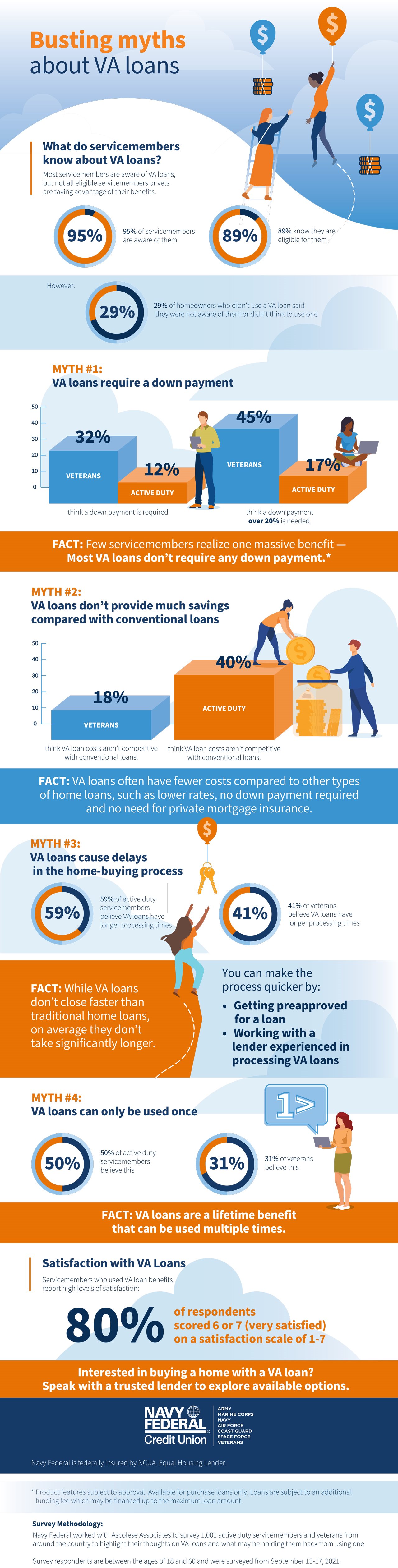 A nationwide survey by Navy Federal Credit Union reveals misconceptions many active duty servicemembers and veterans have about VA loans, preventing them from enjoying their benefits.