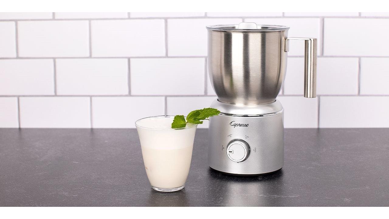 Froth up an Iced Mint Cooler with the Capresso froth Select automatic milk frother. Just pour almond milk into the pitcher with a bit of mint extract and maple syrup; then select “Cold” and press “Start.” Once frothed, pour over ice and garnish with fresh mint. The froth Select has simple one-button operation with illuminated control. Four settings — cold froth, hot froth, hot milk and hot chocolate — create endless beverage possibilities.