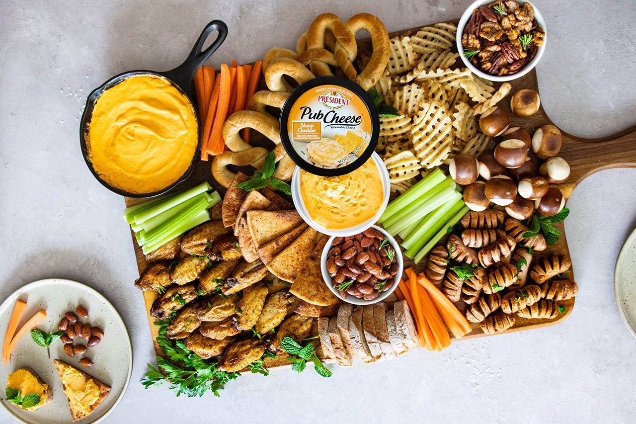 5. Serve and enjoy: Dip, spread and snack freely, mixing and matching favorite bites with Président® Pub Cheese® Sharp Cheddar.